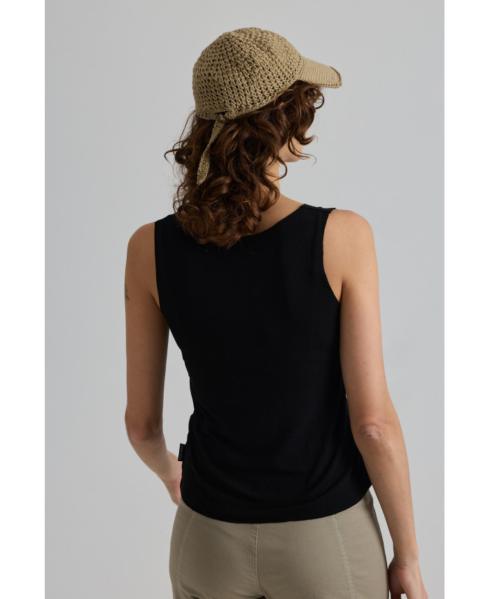 Un dels bàsics imprescindibles de l'estiu i la primavera. Samarreta de disseny minimalista, de forma cenyida i teixit molt elàstic i lleuger. La fluïdesa del teixit la converteix en una peça molt còmode. Perfecte per combinar com a samarreta interior per petos i tot tipus de peces. Detall d'acabat al viu a les vores.