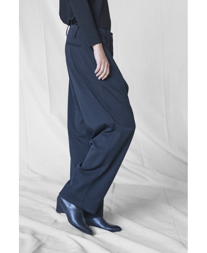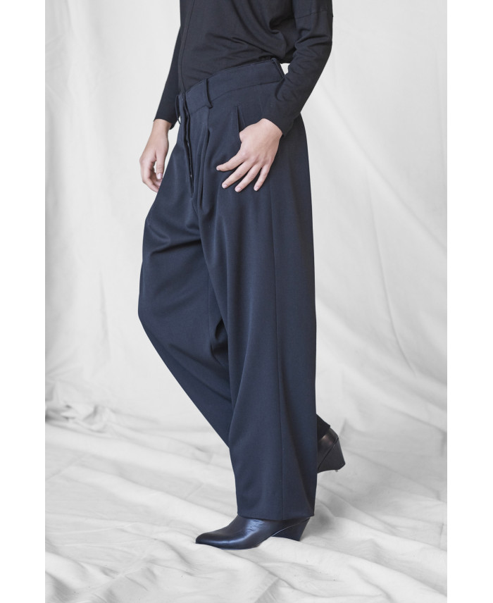 El nou pantaló de la col·lecció dissenyat amb detalls de pantaló sastre. De forma ampla a la cama i amb dos grans plecs al davant. Butxaques sastre al davant i botons a l’interior de la bragueta. Detall de mini butxaca a la cinturilla i pinces desplaçades a l’esquena. Creat per ser una peça elegant i còmoda gràcies al seu teixit elàstic de molt caient i de gramatge mitjà. Combina molt bé amb peces bàsiques.