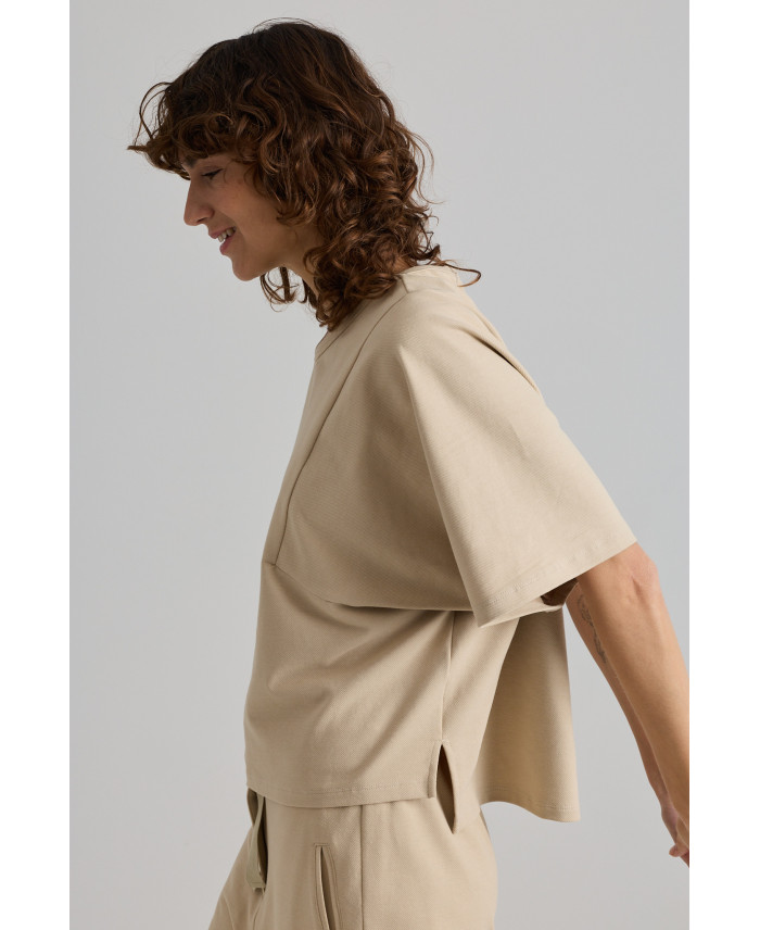 Samarreta de forma oversize. Sisa generosa en forma angular que es desplaça al davant. Detall d’obertures als laterals. El seu teixit de gramatge mitjà la fa ideal pel teu dia a dia. Combina amb tot tipus de peces.