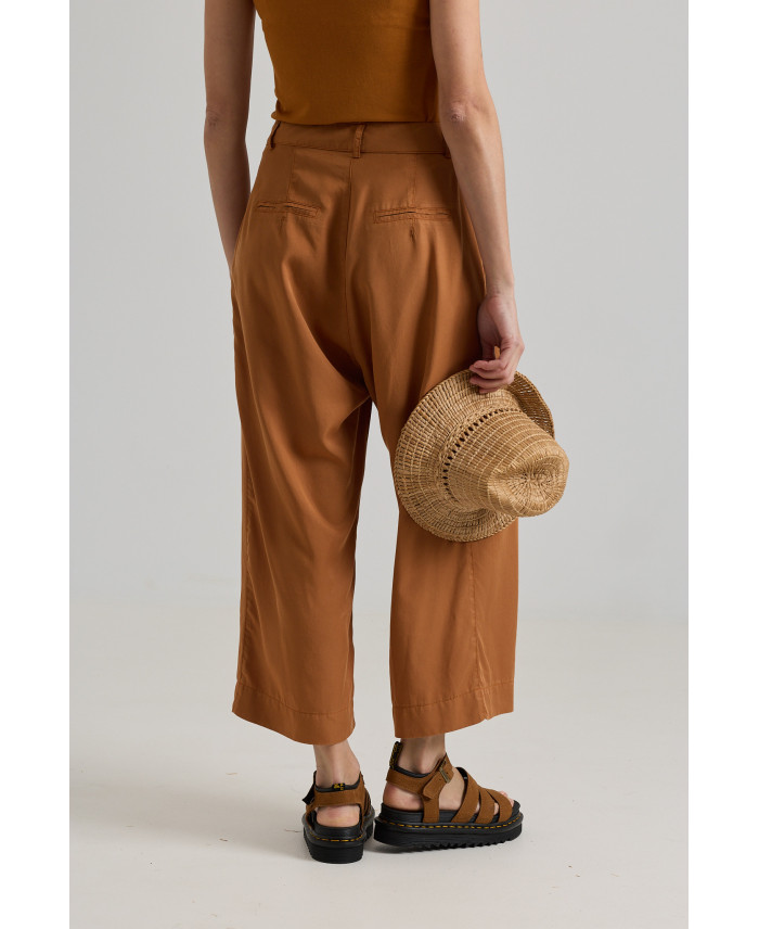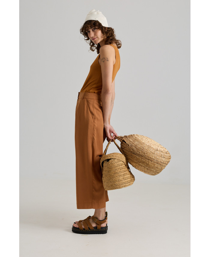 Una peça molt versàtil pel seu disseny minimalista i teixit fluïd. Dos grans plecs al davant i butxaques. Forma molt ampla al camal. Tancament amb cremallera i botó frontal. Peça ideal per combinar amb samarretes bàsiques.