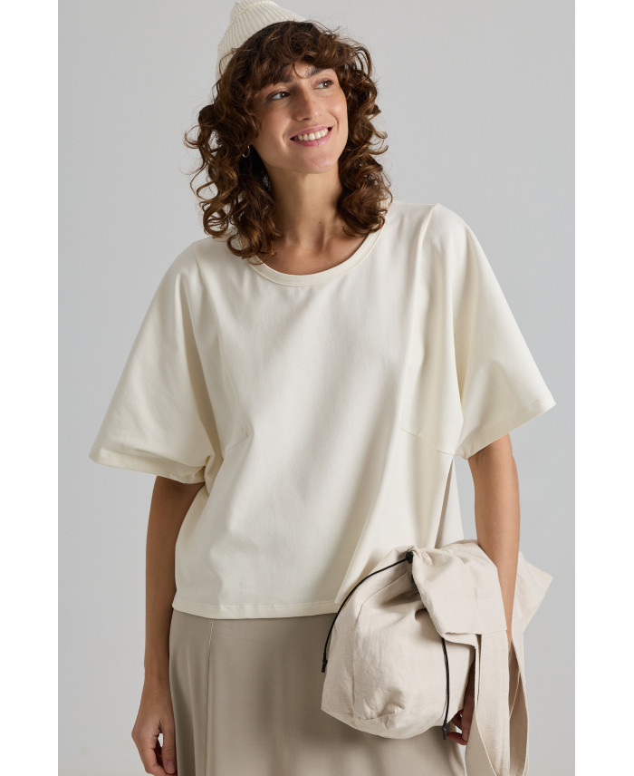 Samarreta de forma oversize. Sisa generosa en forma angular que es desplaça al davant. Detall d’obertures als laterals. El seu teixit de gramatge mitjà la fa ideal pel teu dia a dia. Combina amb tot tipus de peces.