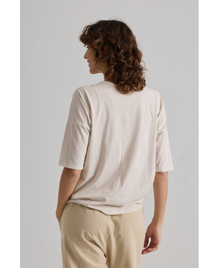 Una de les samarretes que més agraden, s'està convertint en un bàsic imprescindible. Samarreta de màniga tres quarts amb coll barca i detall de costures desplaçades. El seu patró de forma àmplia amb sisa caiguda és perfecte per a un look informal. Combina amb tot tipus de peces i es convertirà en una samarreta bàsica per la seva versatilitat i comoditat. Teixit molt suau, gustós al tacte i amb un punt elàstic.