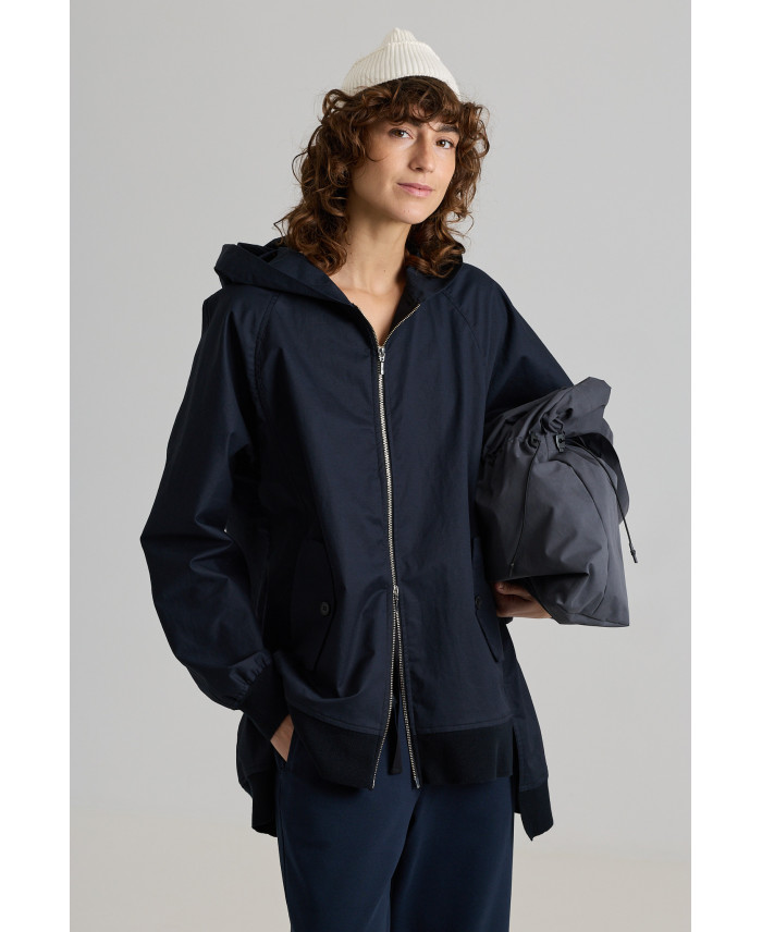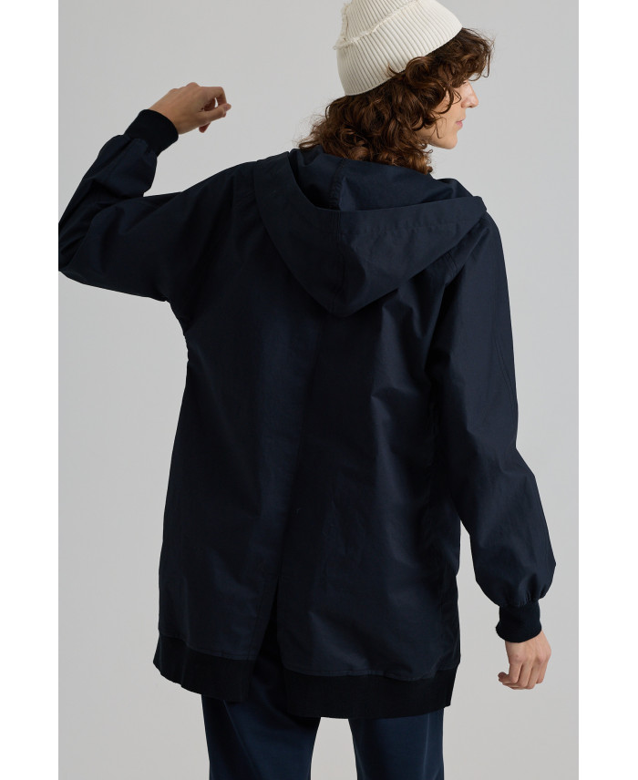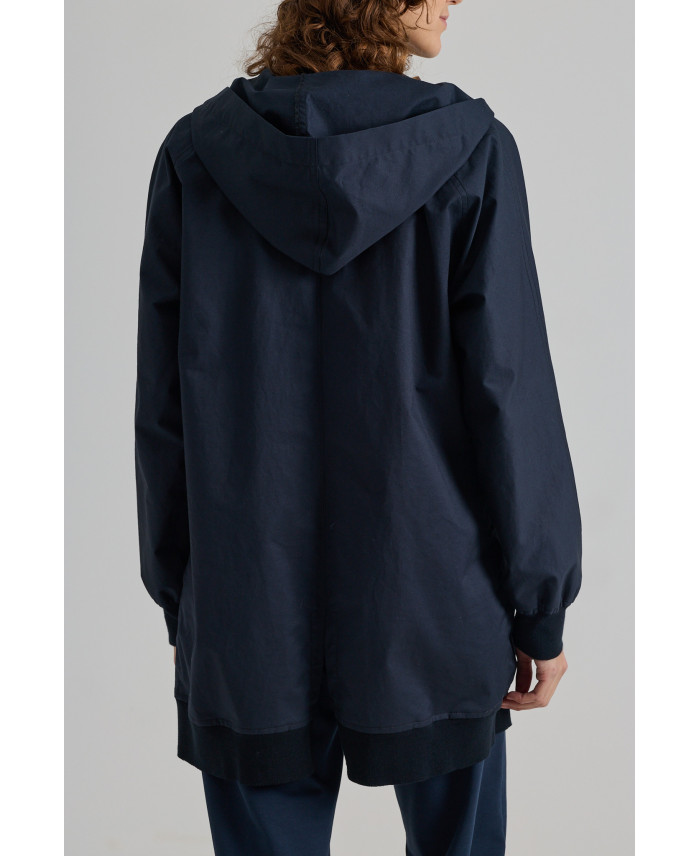Una de les peces més especials de la col·lecció. De forma oversize i sisa caiguda. Botons amagats al davant i 4 butxaques de plastró i amb cremallera, marca de la casa. Canalé al coll i als baixos. De forma irregular al baix i amb obertura lateral i a l’esquena per afavorir el moviment. Teixit de pes mitjà, de tacte suau i molt còmode. No va folrada