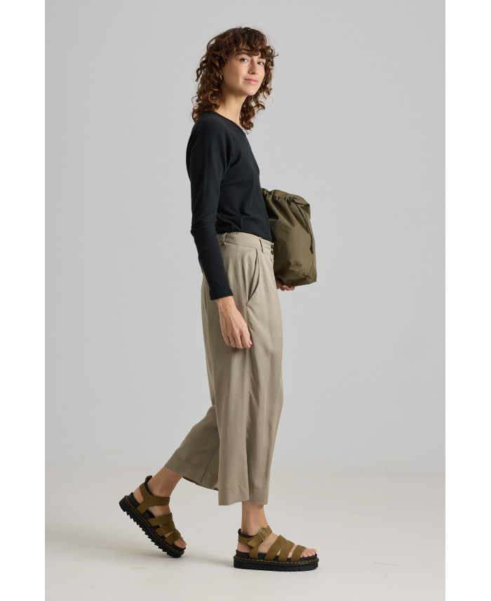 Una peça molt versàtil pel seu disseny minimalista i teixit fluïd. Dos grans plecs al davant i butxaques. Forma molt ampla al camal. Tancament amb cremallera i botó frontal. Peça ideal per combinar amb samarretes bàsiques.
