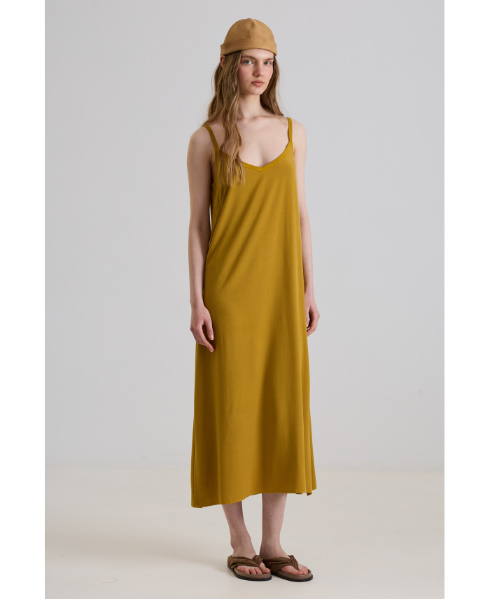 El nou vestit minimalista que t’enamorarà per la seva versatilitat. De forma recta semi-evasé, escot pic i dues obertures laterals que faciliten la mobilitat. Detall de tirants creats amb teixit elàstic, molt còmode. Peça creada amb teixit molt fluid i lleuger, perfecte per als dies més calurosos d’estiu. La seva versatilitat permet combinar-lo amb tot tipus de calçat.