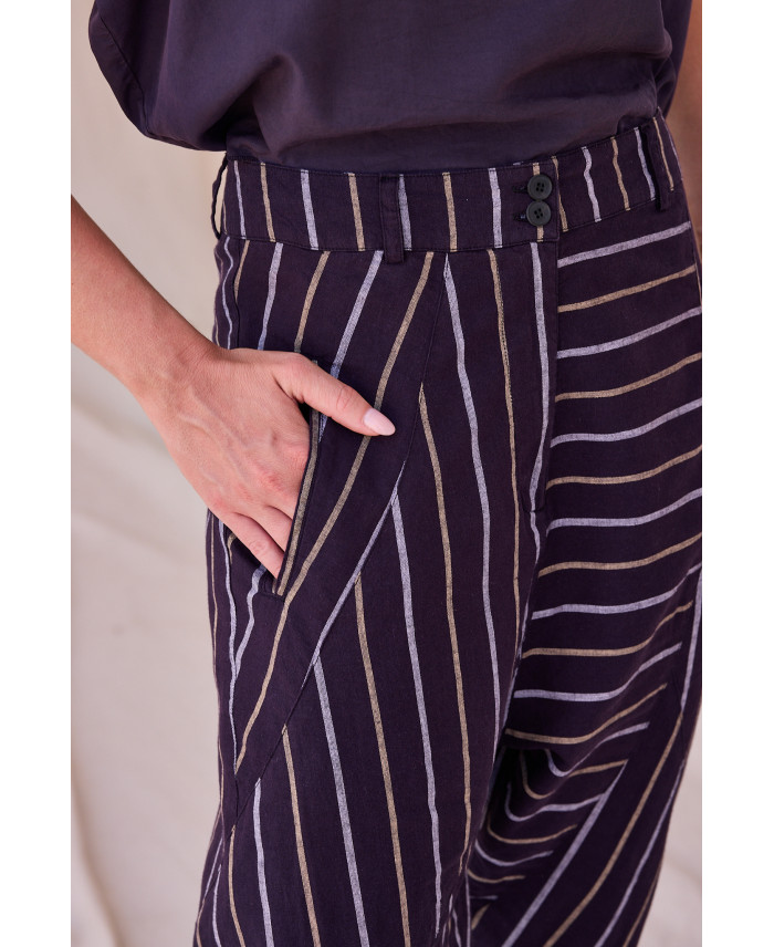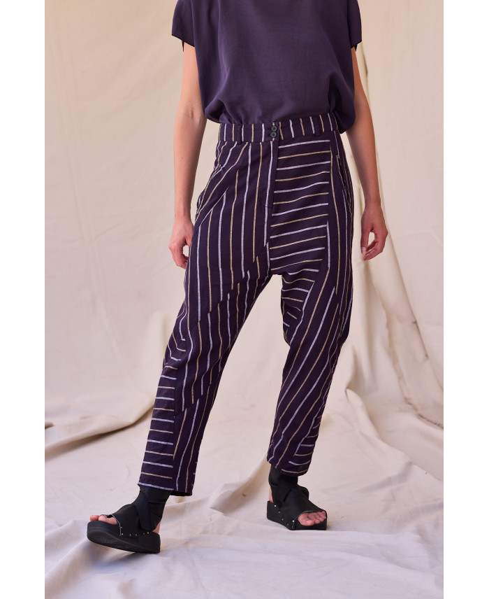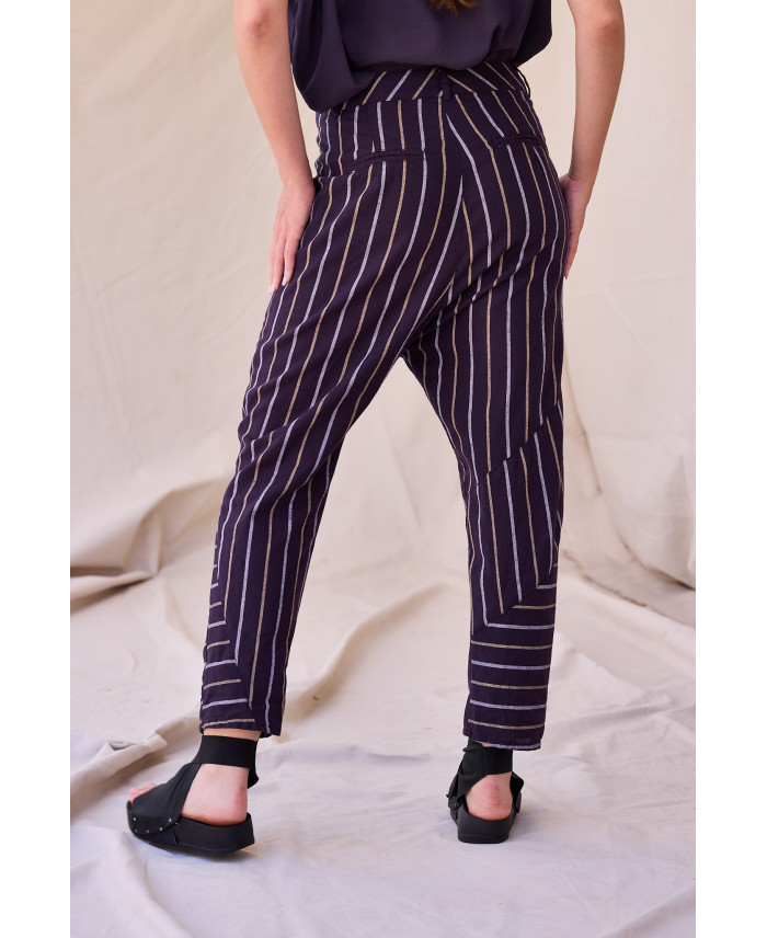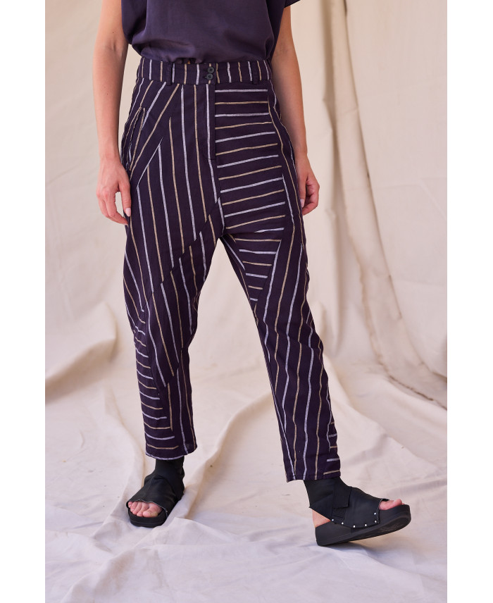 Un disseny que no et deixarà indeferent. De forma recta i semi cenyida al baix. Patronatge marca de la casa de tir baix i butxaques sastre. Destaquen les costures irregulars que permeten jugar amb la direcció de les ratlles del teixit creant així un disseny únic. Teixit lleuger molt agradable al tacte. Combina molt bé amb samarretes bàsiques. La versatilitat de calçat, faran aquesta peça ideal per moltes ocasions.