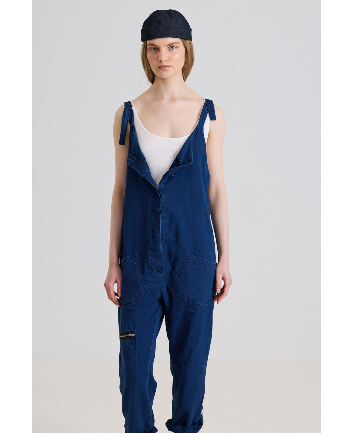 Una de las prendas más exitosas de las últimas colecciones de primavera y verano. De forma recta y abertura frontal con tapeta y botones interiores. Consta de dos grandes bolsillos plastrón en la parte delantera e tirantes regulables para ajustar el largo según la altura. Cinta regulable a la altura de la cintura de la parte de la espalda para ajustar la prenda a la cintura. Detalle de bolsillo con cremallera en una de las perneras y cinta reguladora con botón en la parte del tobillo para ajustar el largo de la prenda. Su tejido resistente lo hará un imprescindible de tu armario de primavera-verano. Combina muy bien con calzado deportivo y sandalias en verano.