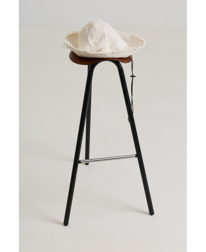 Sombrero marca de la casa, creado con un diseño que se distingue por su forma en la parte delantera. Detalle de pespuntes en el ala de la pieza, que se trabaja de forma deshilachada y permite doblarla. Consta de cordón elástico con tensor para ofrecer la practicidad necesaria. Sombrero creado con tejido de gramaje medio, muy resistente y duradero.