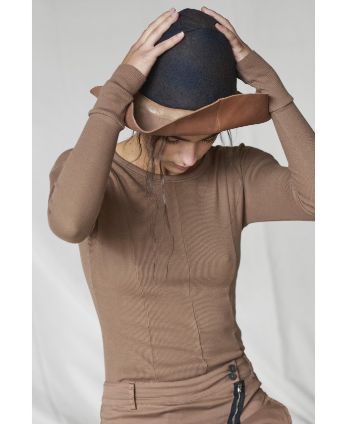 La pieza ideal como camiseta interior. De forma ceñida, con múltiples costuras que se adaptan al cuerpo. Detalle de costura en el puño. Tejido de canalé muy elástico, de gramaje medio. Destaca por su versatilidad y confort. El canalé es un tejido elástico de por sí, se fabrica mediante un telar circular que le da elasticidad a la estructura del tejido.