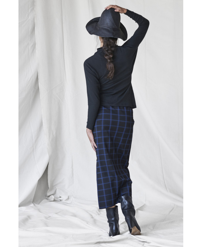 Falda de forma recta y tejido elástico, está diseñada para ser una pieza cómoda y muy versátil, perfecta para combinar con chaqueta corta y larga. Cinturilla con goma elástica y abertura en el bajo. Tejido de gramaje medio que ayuda a definir la silueta sin marcar. Falda de estilo minimalista creada para utilizar durante varias estaciones del año. Combina muy bien con sneakers y botas en invierno.