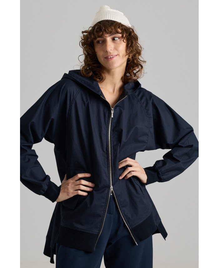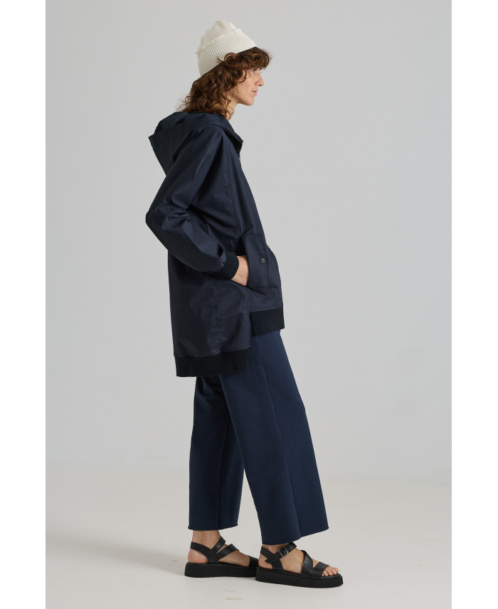 Una de las piezas más especiales de la colección. De corte oversize y con sisas caídas. Botones ocultos en el frente y cuatro bolsillos de parche con cremallera, un sello característico de la marca. Canalé en cuello y bajos. Bajo de forma irregular, con abertura lateral y trasera que favorece el movimiento. Tejido de peso medio, suave al tacto y muy cómodo. No está forrada.
