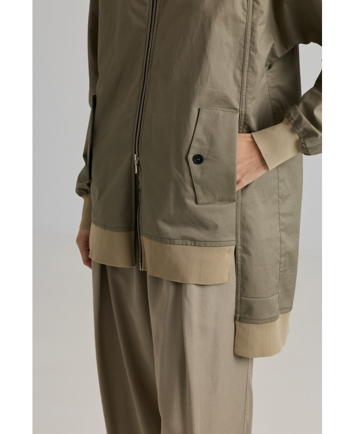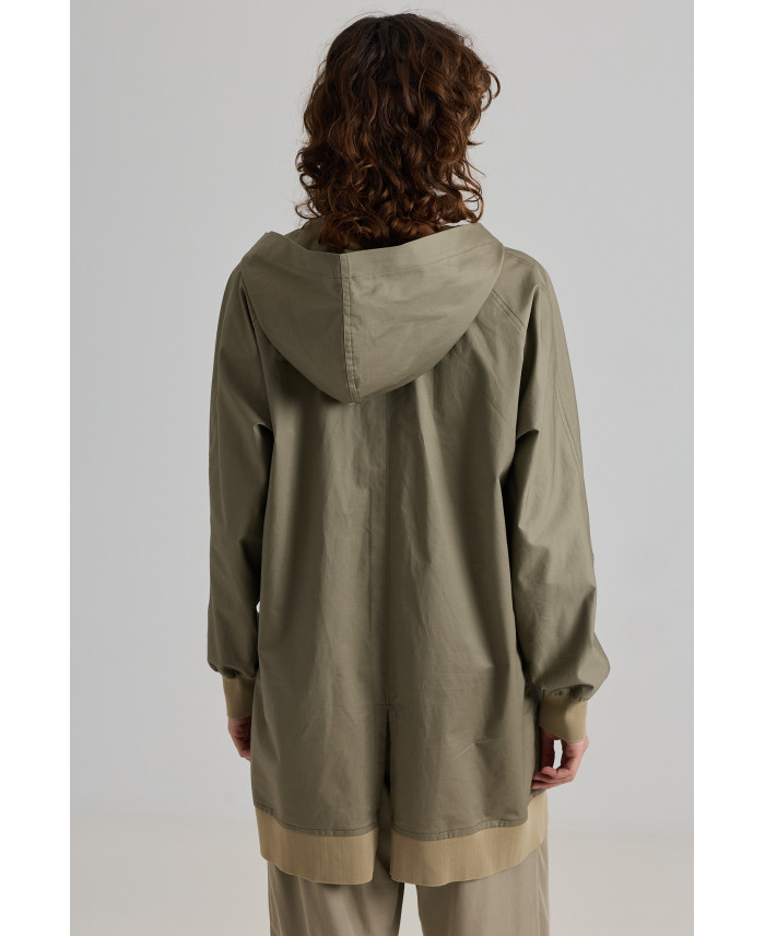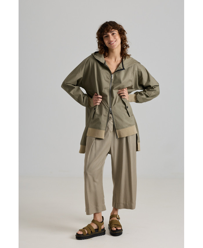 Una de las piezas más especiales de la colección. De corte oversize y con sisas caídas. Botones ocultos en el frente y cuatro bolsillos de parche con cremallera, un sello característico de la marca. Canalé en cuello y bajos. Bajo de forma irregular, con abertura lateral y trasera que favorece el movimiento. Tejido de peso medio, suave al tacto y muy cómodo. No está forrada.