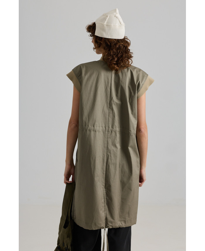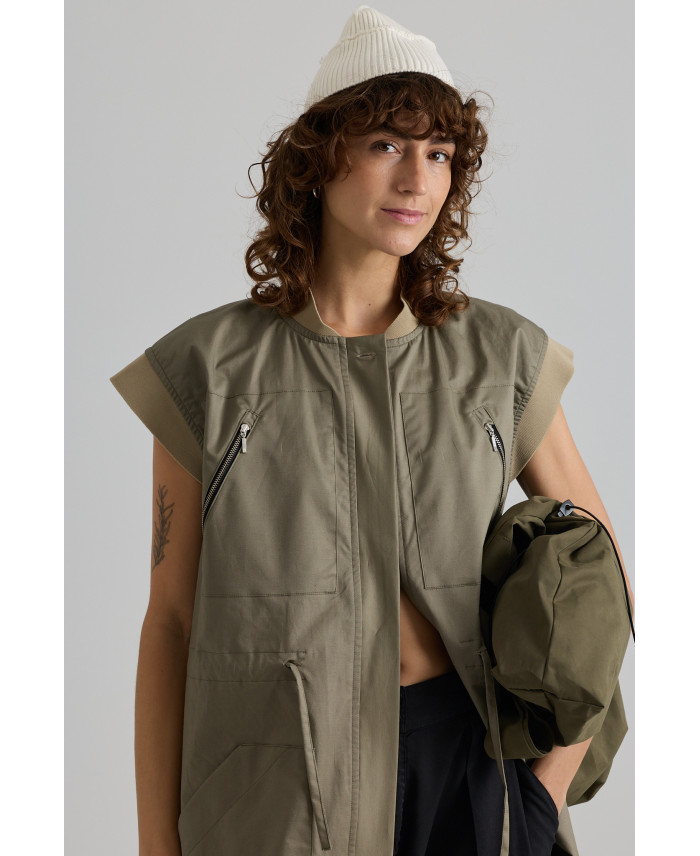 Una de las novedades que no te puedes perder. Chaleco de corte recto y botones escondidos en el centro. Consta de 4 bolsillos delanteros y cinta reguladora en la cintura. Canalé en el cuello y en la sisa. Detalle de cinta en el bajo y abertura en la espalda. Una pieza muy versátil que combina con todo tipo de prendas. Su tejido lo hace ideal para la primavera y el otoño. No va forrado.