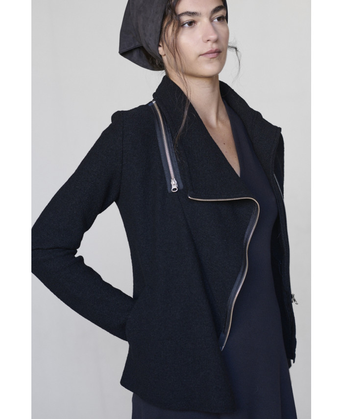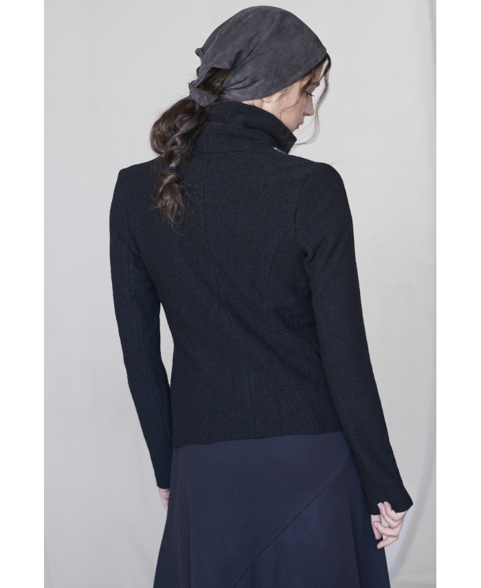 Designer’s label jacket, signature fit. Maxi neck and front displaced zip for the closure. Two side pockets on the front. Very comfortable and light weight fabric. Ideal garment for your travel bag. This is the perfect jacket for the travellers, doesn’t need to be ironed and it can be rolled to make it smaller. No linen needed to feel the warm of the fabric.