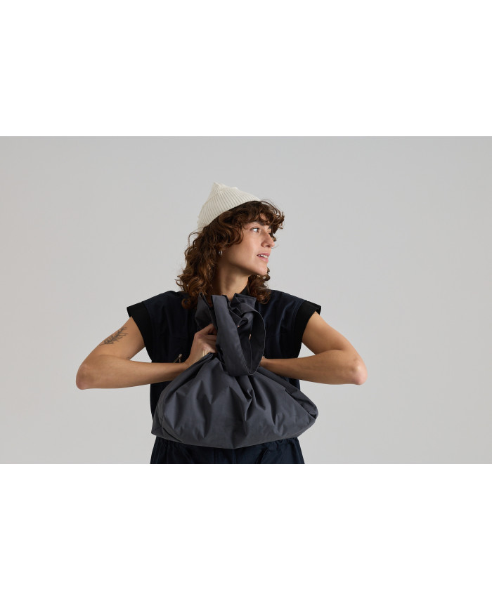 The ideal bag for your everyday life, with a minimalist style and light weight. Main compartment lined with cotton poplin. Adjustable elastic cords to close and open the bag. It also has two very comfortable handles. Created with technical fabric that is easy to care for.
