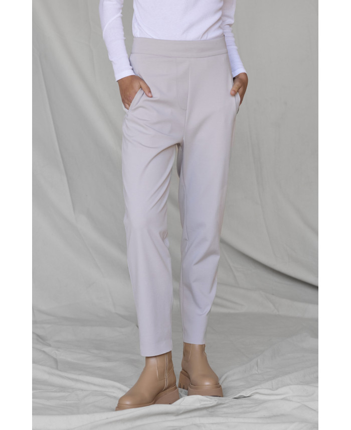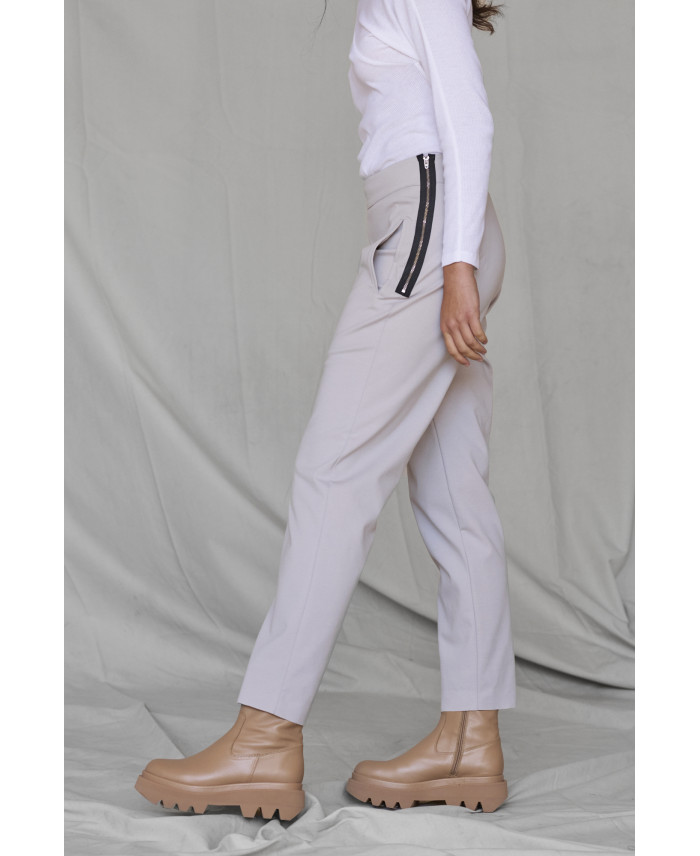 The essential trousers of the collection. Semi-tight straight shape on the leg and fitted on the hips. Two side pockets for the front and side zip for the closure. Comfort is the word to describe these pants. Made of comfy elastic plush fabric that they adapt perfectly to your day to day. The minimal style combines perfectly with a huge sort of different clothes. The design fits perfectly to every body and is designed as an essential garment for the several season's use.