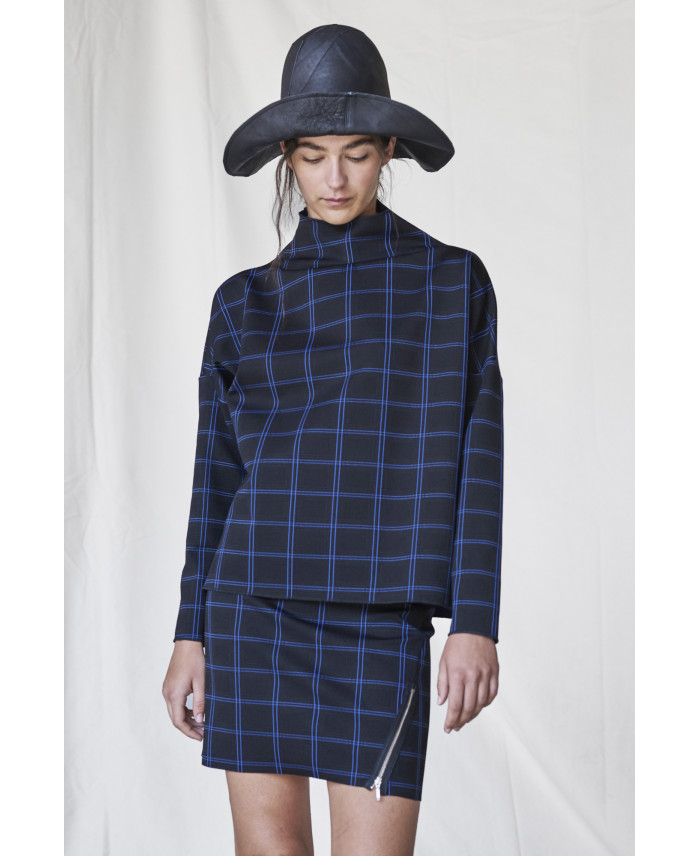 Jumper created for the most versatile use. Straight shape, low shoulders and turtle boat neck with lateral brackets to closure. This garment is made with a comfortable, medium-weight, stretch cotton fabric. The design fits every body perfectly and is intended to be an essential piece for wear throughout the year.