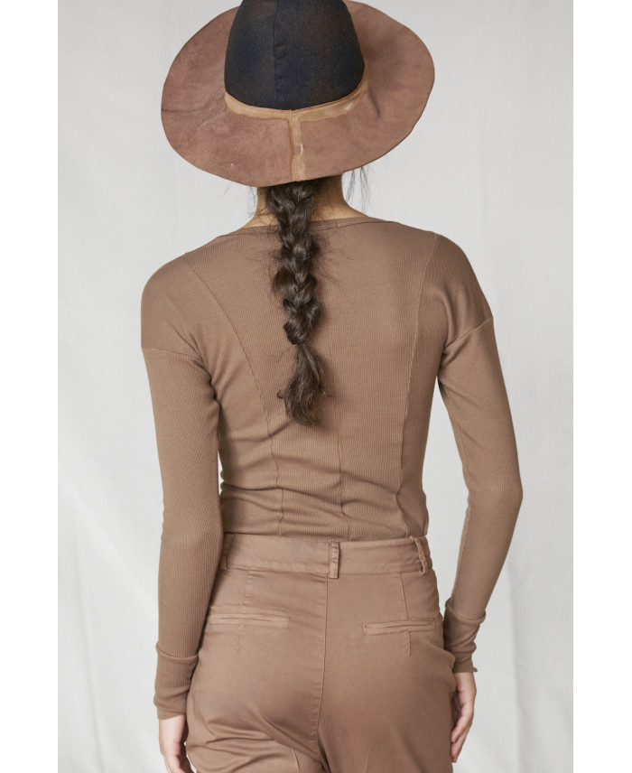 Tight t-shirt with round neck. Maximum comfort thanks to its medium-weight ribbed knit fabric, which is very elastic and has a special fluidity. Ideal piece to combine with all types of trousers and skirts. It stands out for its versatility and comfort. Ribbed is an elastic fabric thanks to its manufacturing, using a circular loom that gives elasticity to the fabric structure.