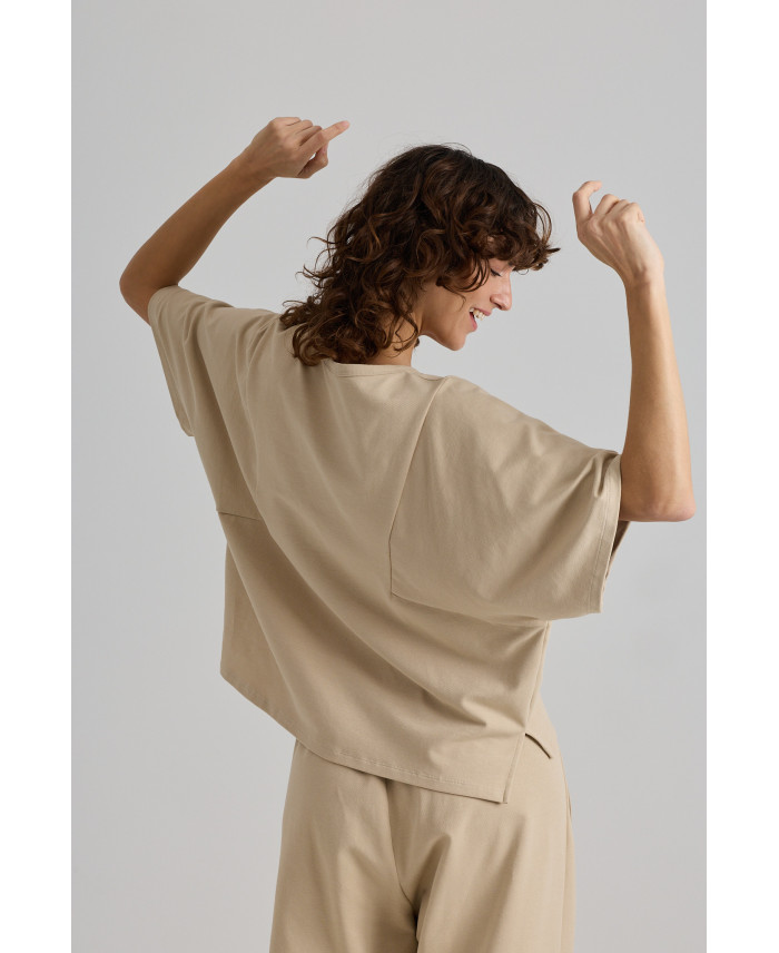 Oversized T-shirt with generous, angular armholes that extend to the front. Side-opening details for added movement. Its medium-weight fabric makes it perfect for your daily life. Pairs with all types of garments.