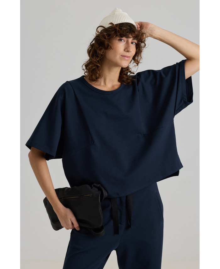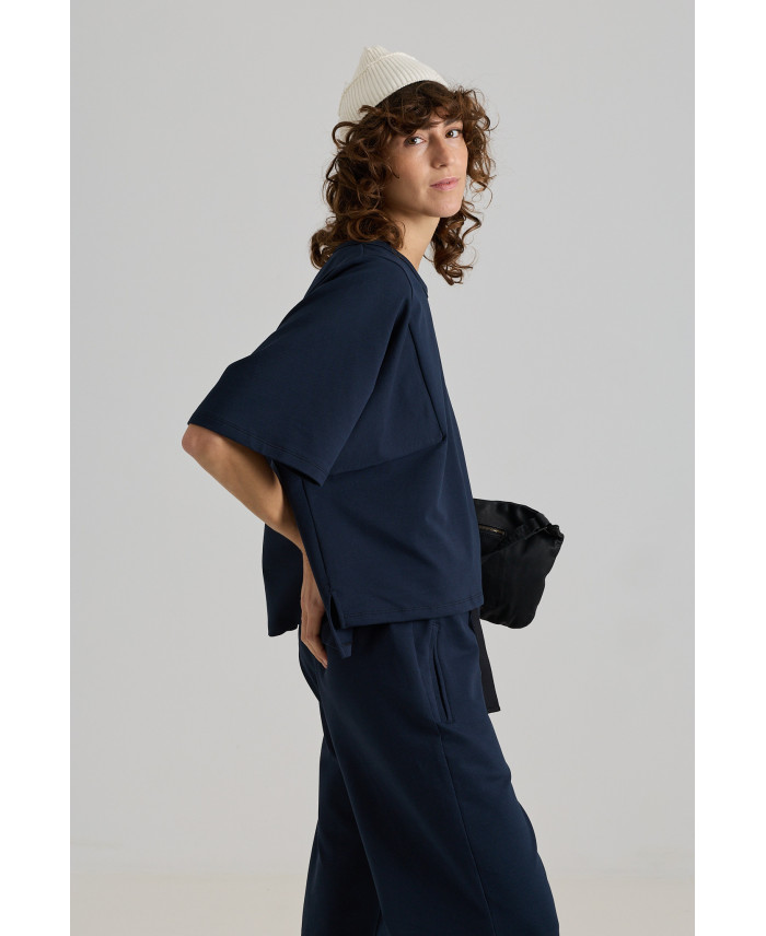 Oversized T-shirt with generous, angular armholes that extend to the front. Side-opening details for added movement. Its medium-weight fabric makes it perfect for your daily life. Pairs with all types of garments.