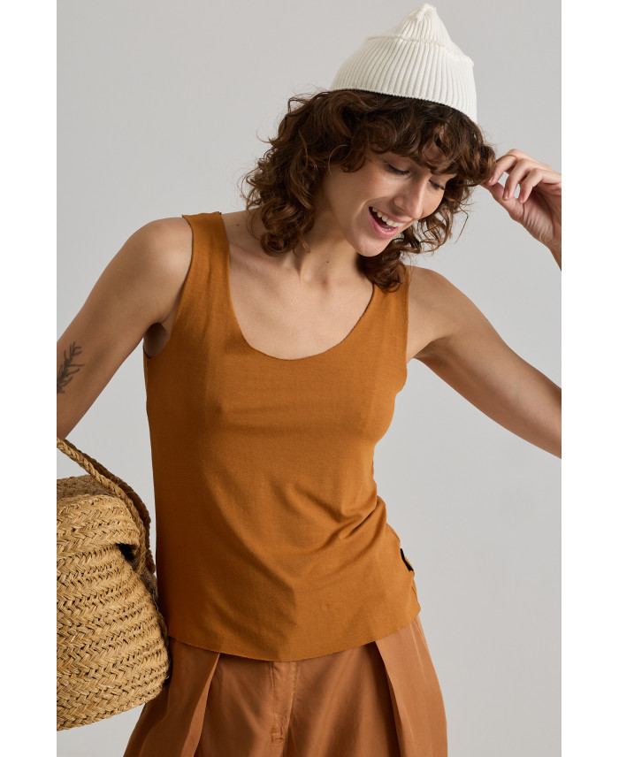 This tank top will surprise you for its versatility. Minimalist design for this comfortable elastic fabric t-shirt . The undershirt is thin under clothing and no undershirt lines shine through - fits like a second skin. Detail of raw hem. This garment has a slim fit cut. Created with very light high-quality cotton and slightly elastic that gives great comfort to the garment. This pieces is ideal to pair with jumpsuits and underwear.