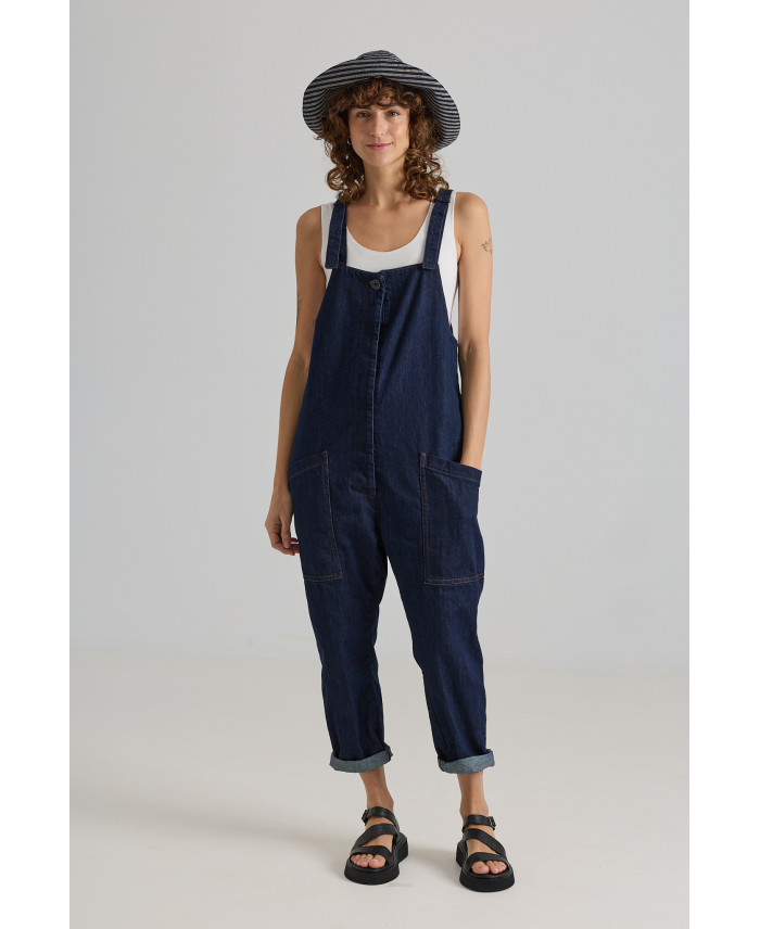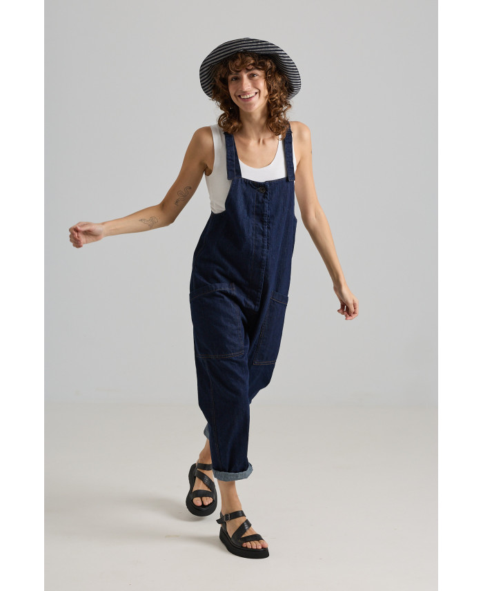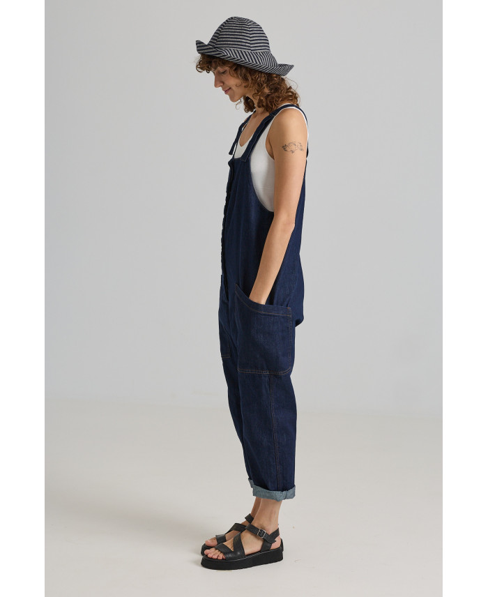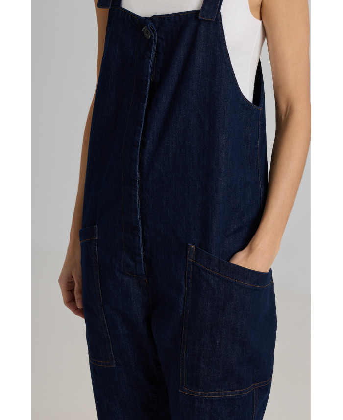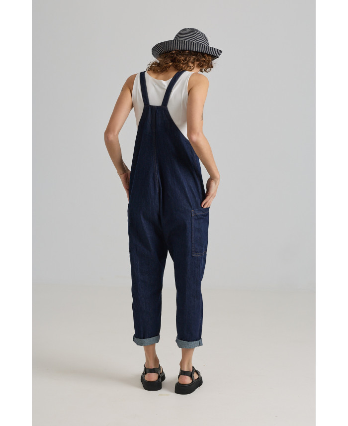 Iconic jumpsuit with a signature design. Front patch pockets, a low-rise fit, and a straight-leg cut. Closure with a hidden front button placket and adjustable shoulder straps.