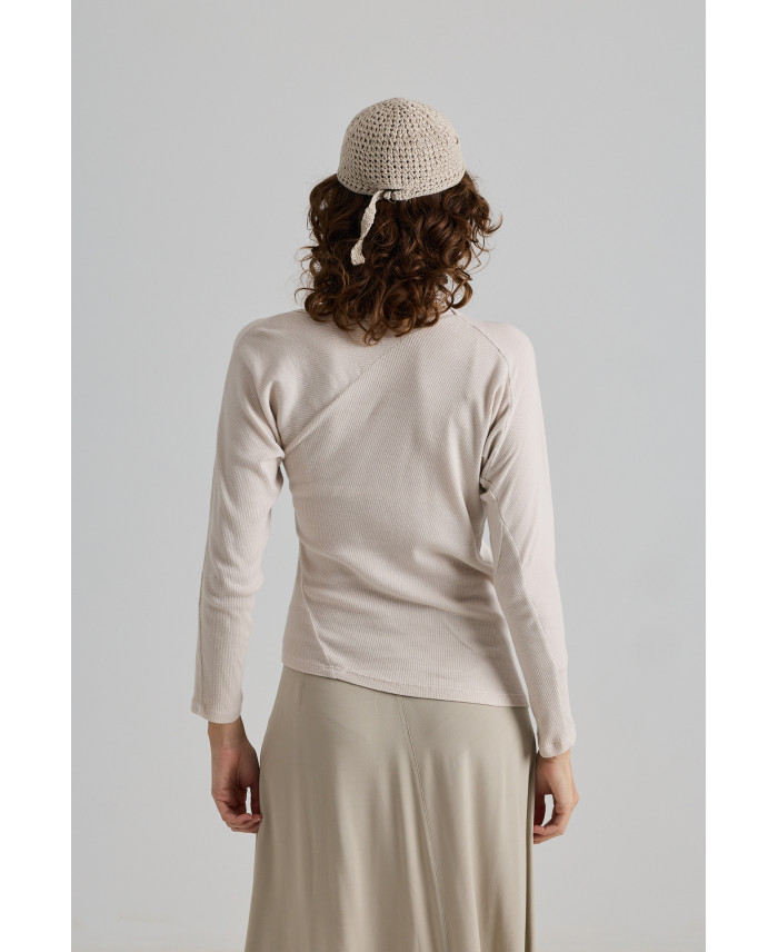 A piece you’ll fall in love with for its design and versatility. Features a slim fit and an asymmetrical neckline. A signature house design with our characteristic irregular seams. Very lightweight rib-knit fabric: comfortable and flattering.