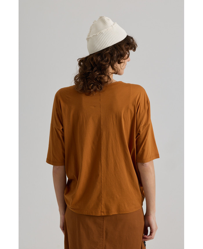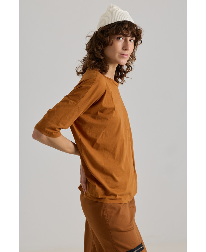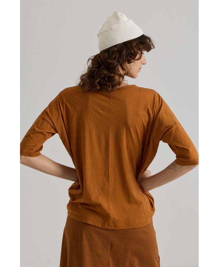 One of our most popular t-shirts, it's becoming an essential basic. Three-quarter sleeve t-shirt with boat neck and detail of displaced seams. Its wide, dropped-shoulder pattern is perfect for a casual look. Made with cotton woven in Portugal, it's very soft to the touch and slightly elastic. This t-shirt embodies a defiance of seasons. It can always be worn, be it as a stand-alone piece or layered under all types of jackets.