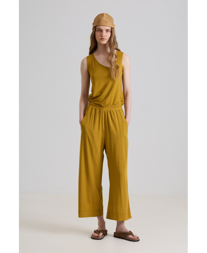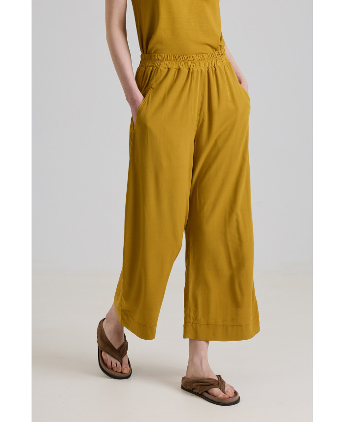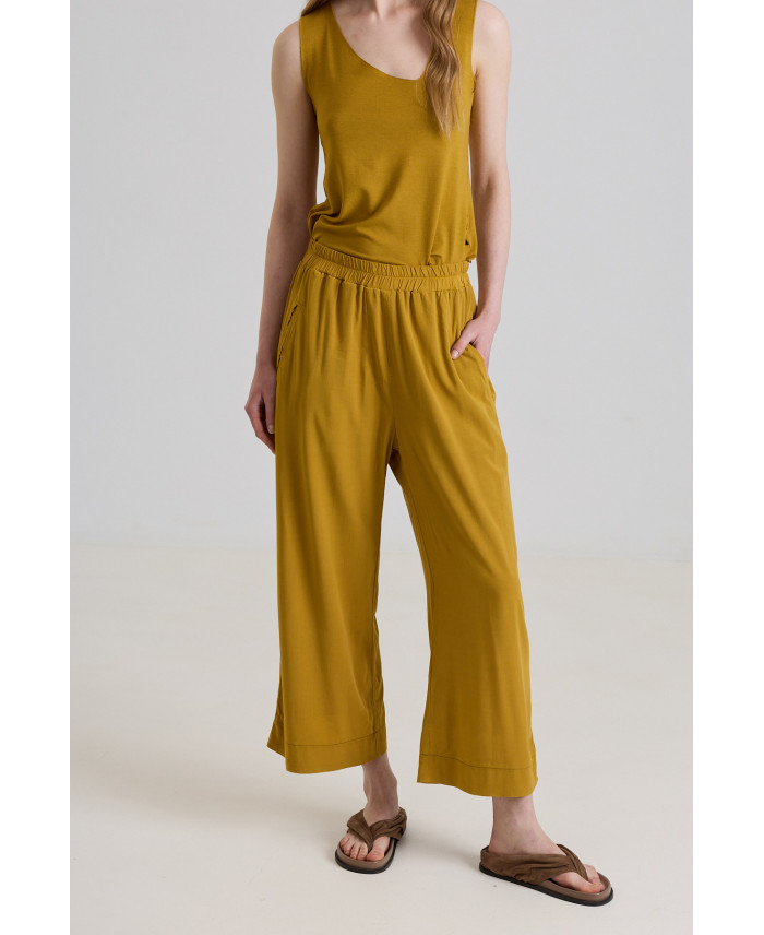 A summer essential. Wide-leg trousers with front tailored pockets. Very comfortable thanks to its elastic fabric and waistband. Their relaxed, easy fit makes them very versatile, pairing perfectly with any garment. Crafted from a fluid, lightweight, and breathable fabric ideal for the hottest summer days.