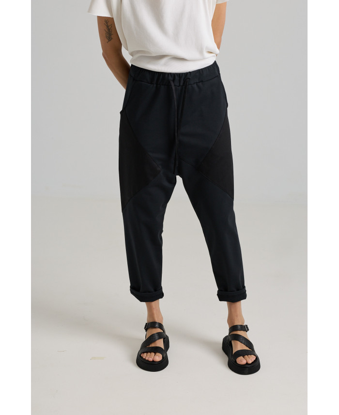 Oversized shape and low-rise trousers, perfect for your day to day. Front pockets and a comfortable elastic waistband. A classic brand design, featuring signature irregular seams and mixed fabrics. Made from highly stretchable plush fabric with an exceptionally soft hand feel. Pairs perfectly with all types of t-shirts. Their versatility with different footwear makes them an ideal piece for multiple seasons.